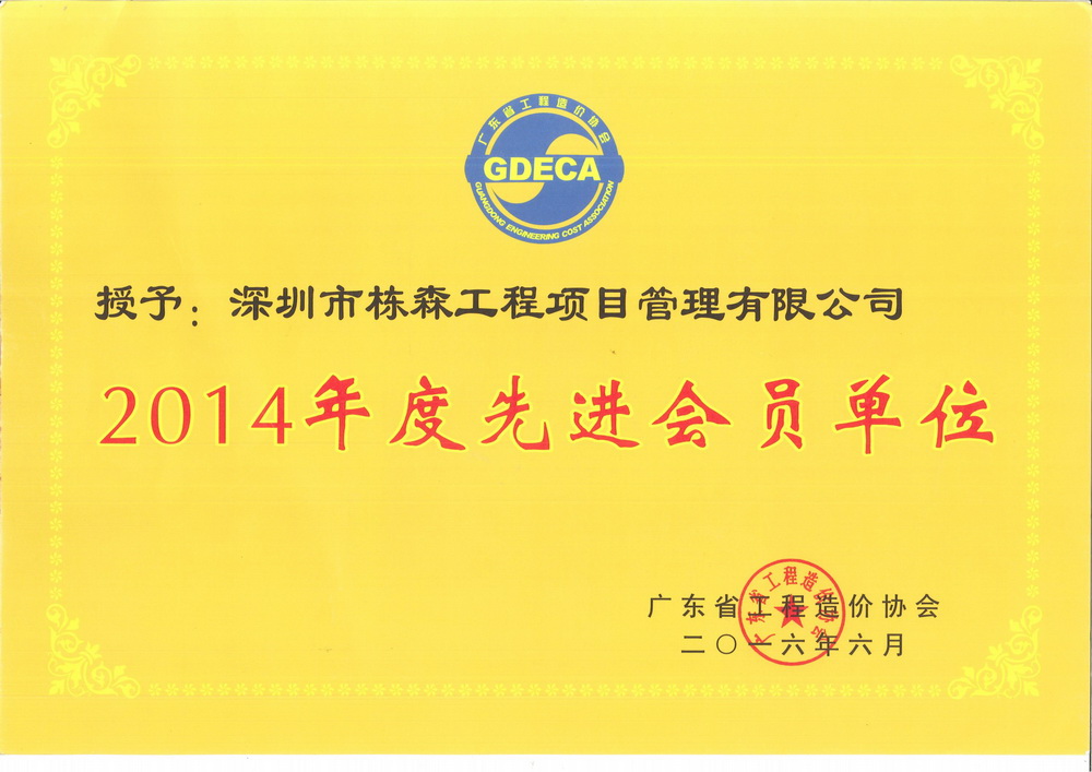 廣東省工程造價協(xié)會2014年度先進(jìn)會員單位 |